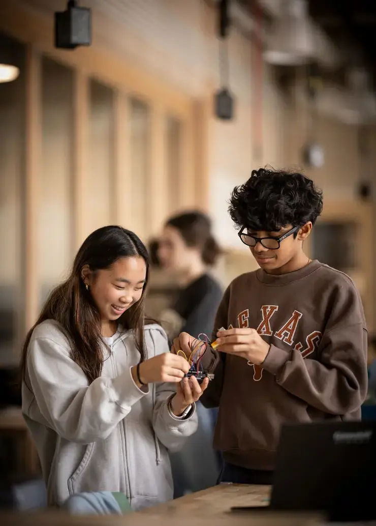 | Our teaching is informed by current research and deep experience. We use innovative curricula and tools to increase engagement and develop skills, like ideating, prototyping, failing, and fixing. During kindergarten project-based learning units, students turn a classroom into a rainforest, diving into the concept of conservation. Second graders build miniature cities to learn about empathy and human needs. Third graders participate in a coding build-a-thon each spring. |